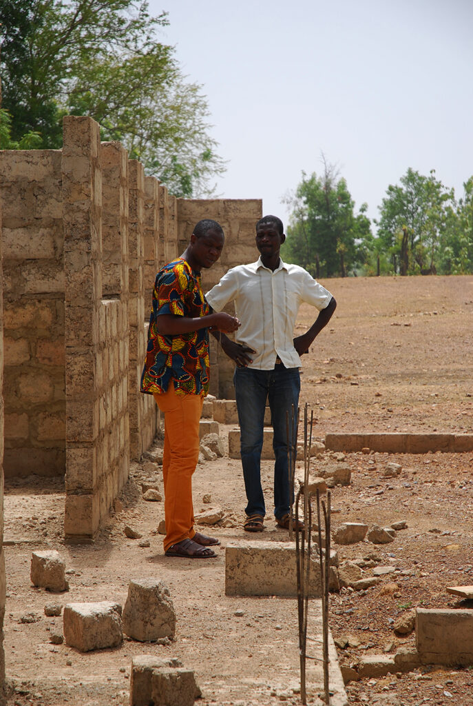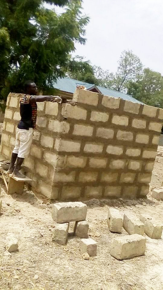 De bouw gaat stap voor stap verder. Na een vergadering onder de boom een paar weken terug, is er weer gestart om stenen te bakken. De zon doet zijn werk.