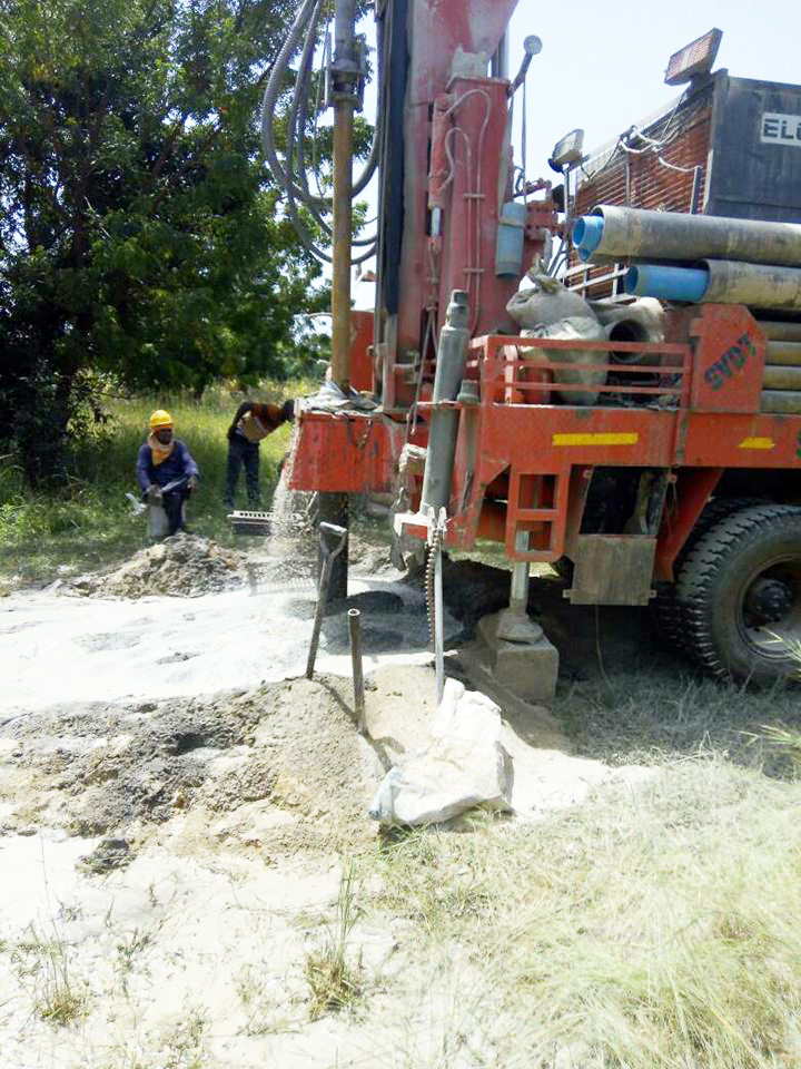 Een waterput met een mechanische pomp zodat we zelf het water kunnen oppompen naar de tank op het dak. Zo zijn we zelfvoorzienend. Altijd stromend water is een must in het healthcentre.