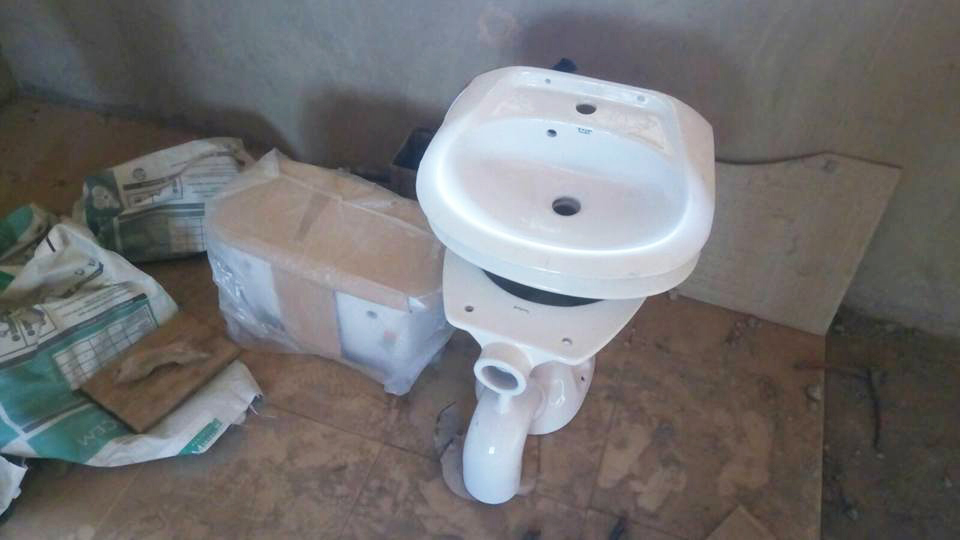 Het sanitair binnen is klaar. De stelling voor de watertank wordt gemetseld. De waterleidingen worden aangelegd. En zo gaan we langzaam naar het eindresultaat.
