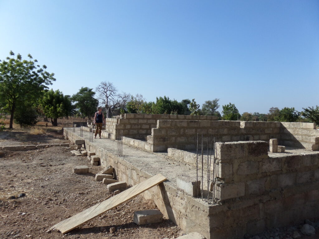 De bouw heeft een tijd stilgelegen. De reden, ten eerste het geld was op en ten tweede het is regentijd. Dat houdt in dat de boeren moeten zaaien en oogsten. Omdat we van de dorpelingen afhankelijk zijn betekent dat geduld hebben.